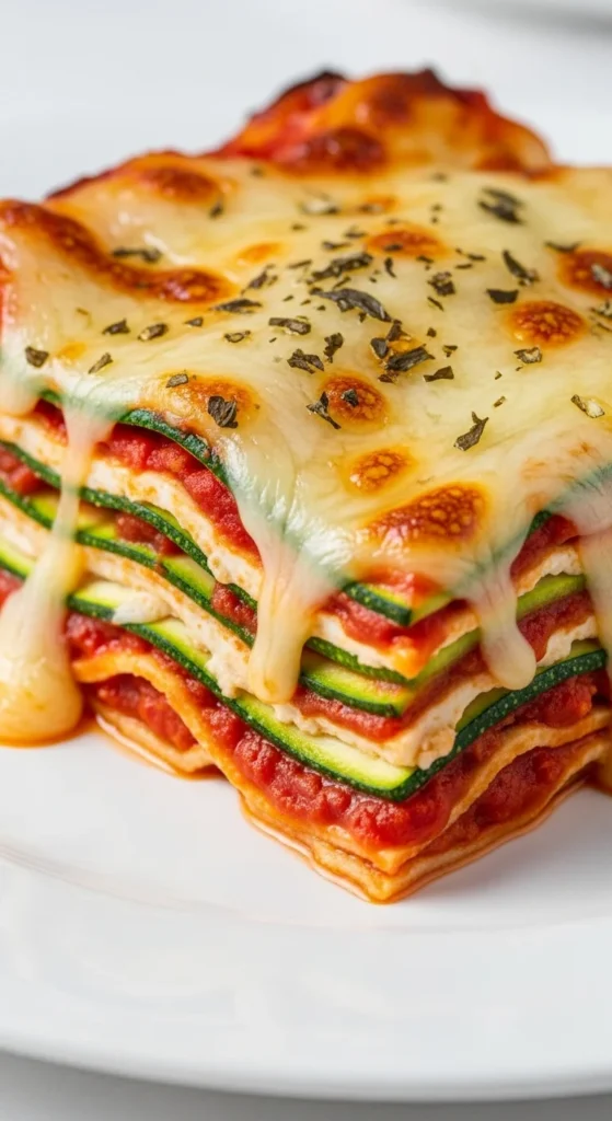 Thin zucchini slices replace pasta sheets for a gluten-free lasagne option.