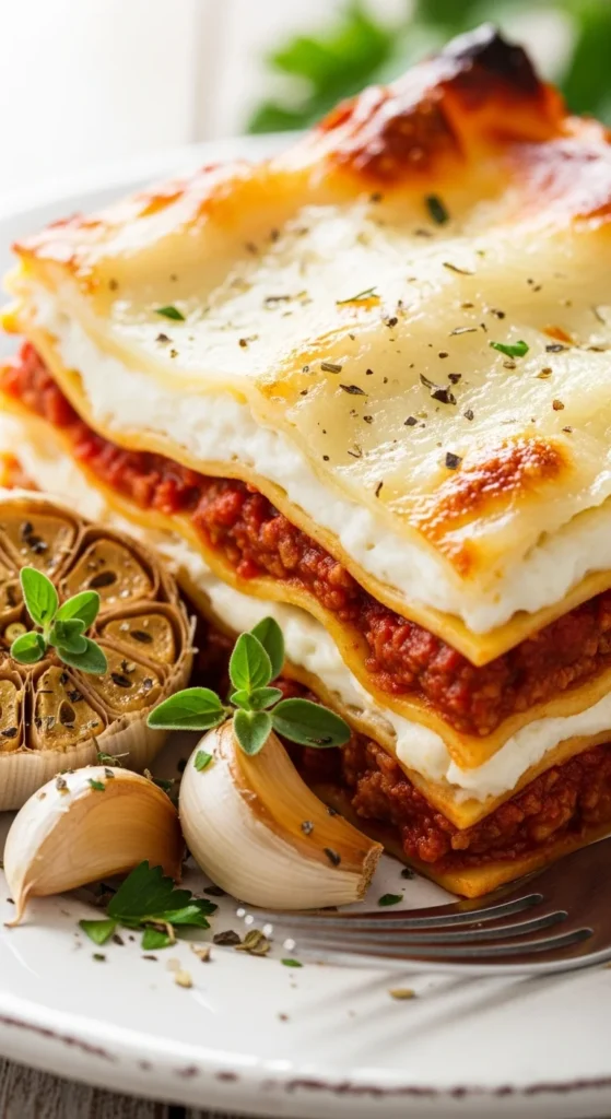 Roasted garlic blended into the white sauce gives this lasagne a deep, mellow flavor.