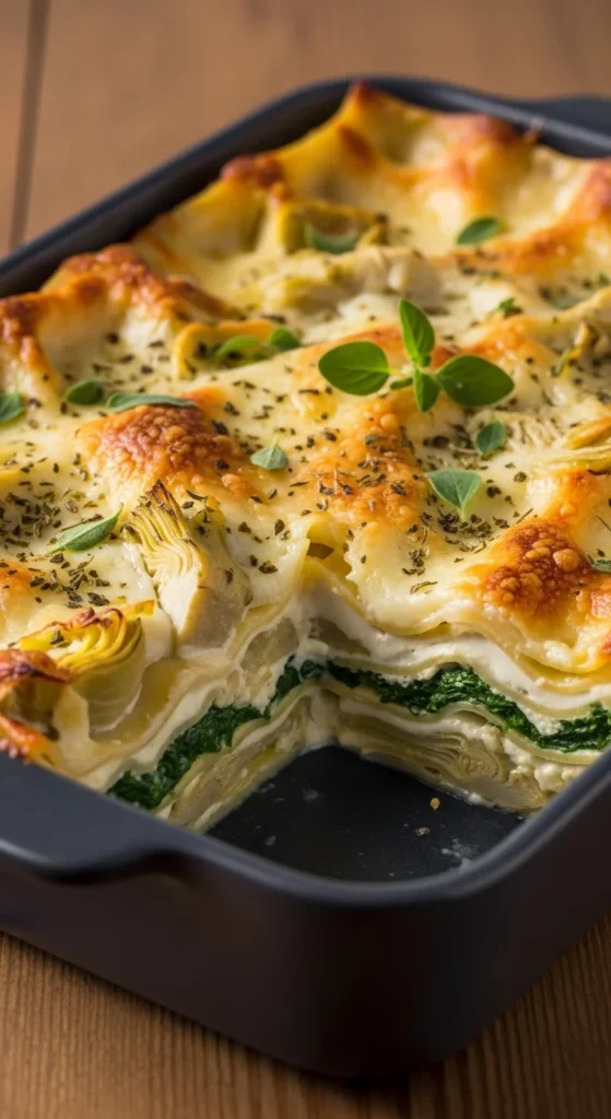 A meatless lasagne filled with spinach and a blend of cheeses that feels hearty and comforting.