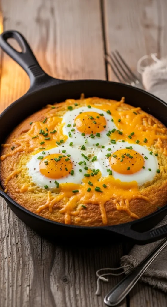 17. Cheddar Cornbread Egg Skillet