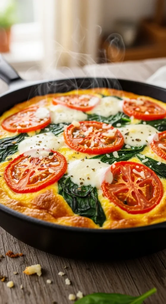 9. Cheesy Spinach & Tomato Frittata Skillet
