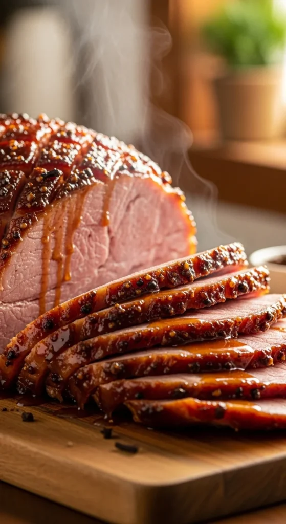 A warm spiced glaze gives this holiday ham a welcoming aroma.