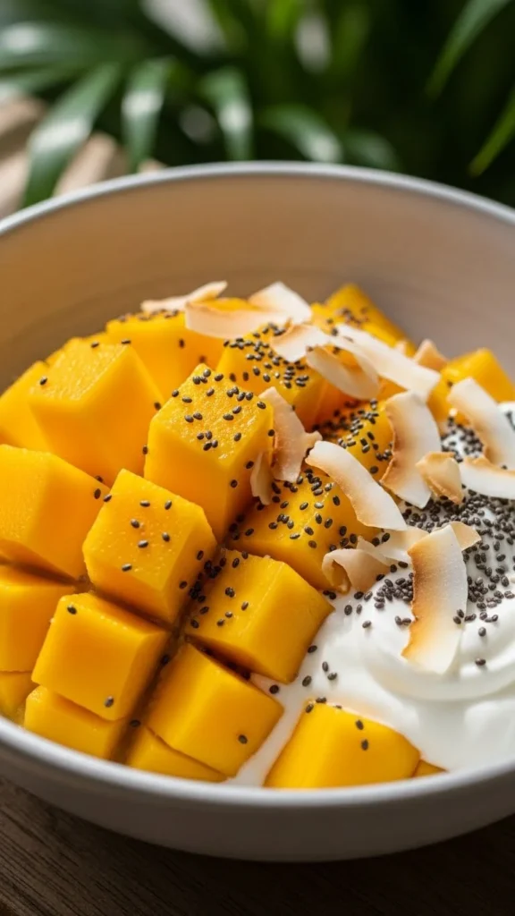 A creamy, fresh bowl that pairs sweet mango with cool coconut for a bright start to your brunch.