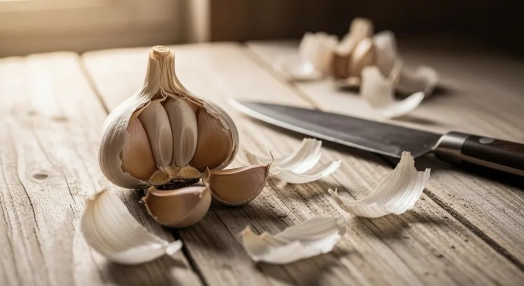 Before diving into the 10-second methods, make sure you’re starting with fresh, firm garlic bulbs. Older ones tend to have tighter skins that cling harder.