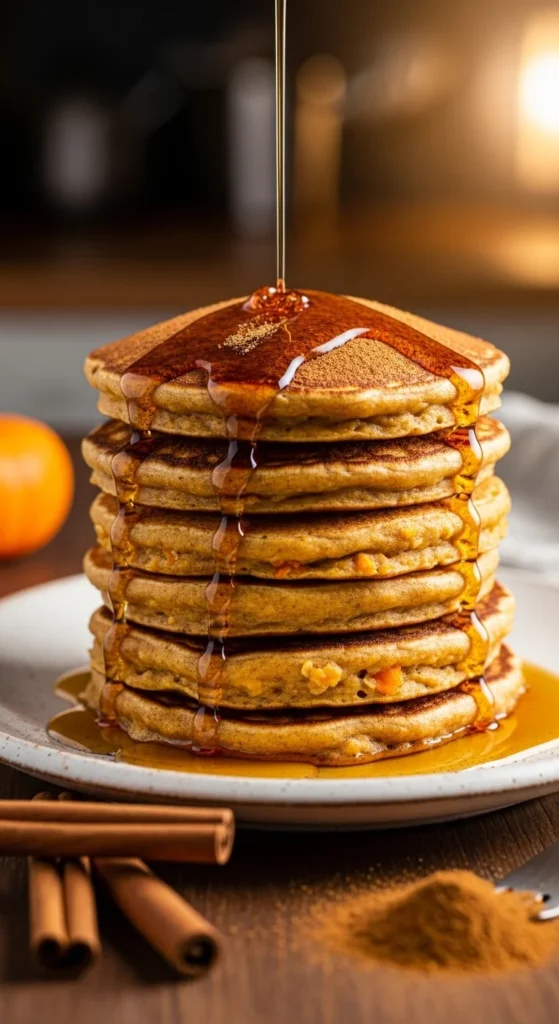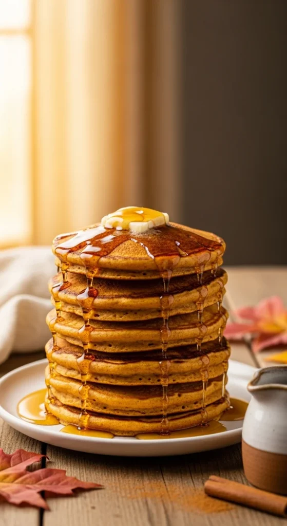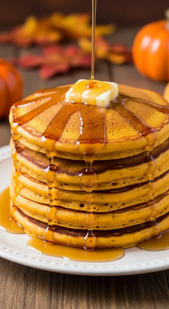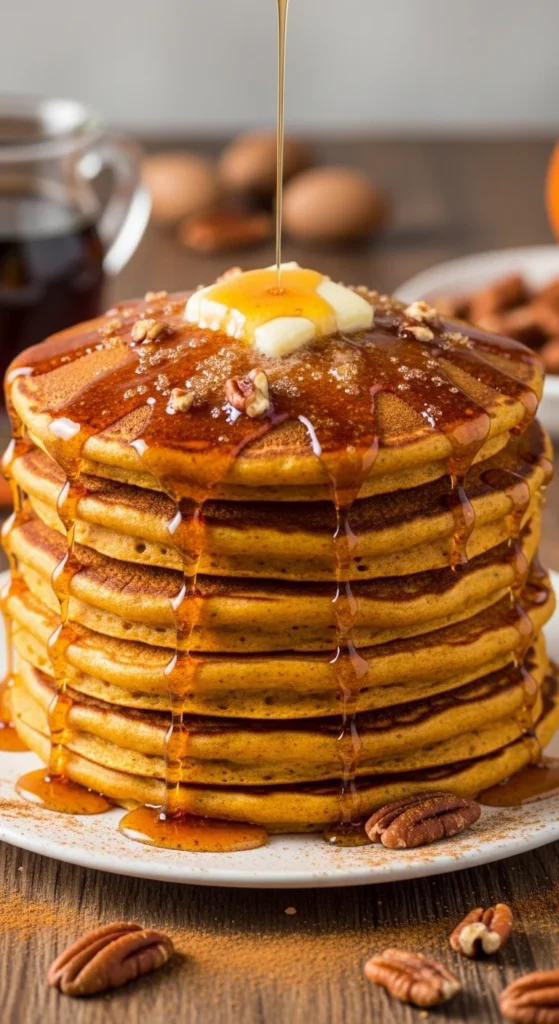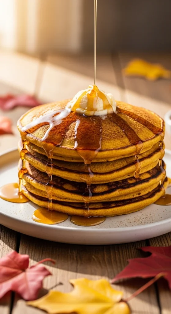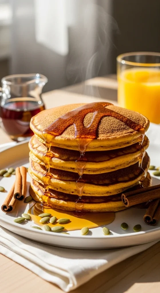 Pumpkin pancakes are one of the most comforting breakfasts for cool fall mornings. Pumpkin puree creates soft, fluffy pancakes while pumpkin pie spice adds warm cinnamon, nutmeg, and ginger flavor. When cooked slowly on a warm skillet, these pancakes develop golden edges and tender centers that stack beautifully on a plate.