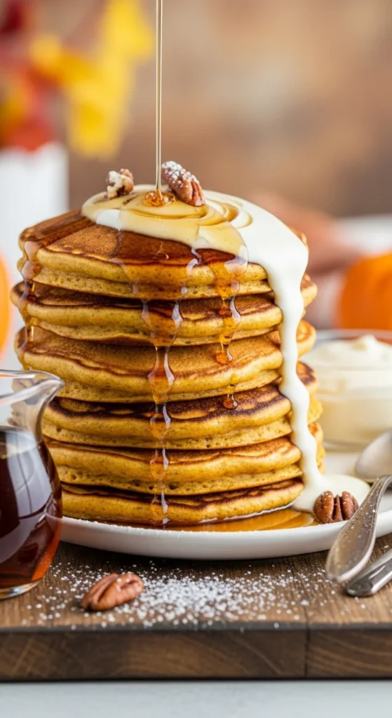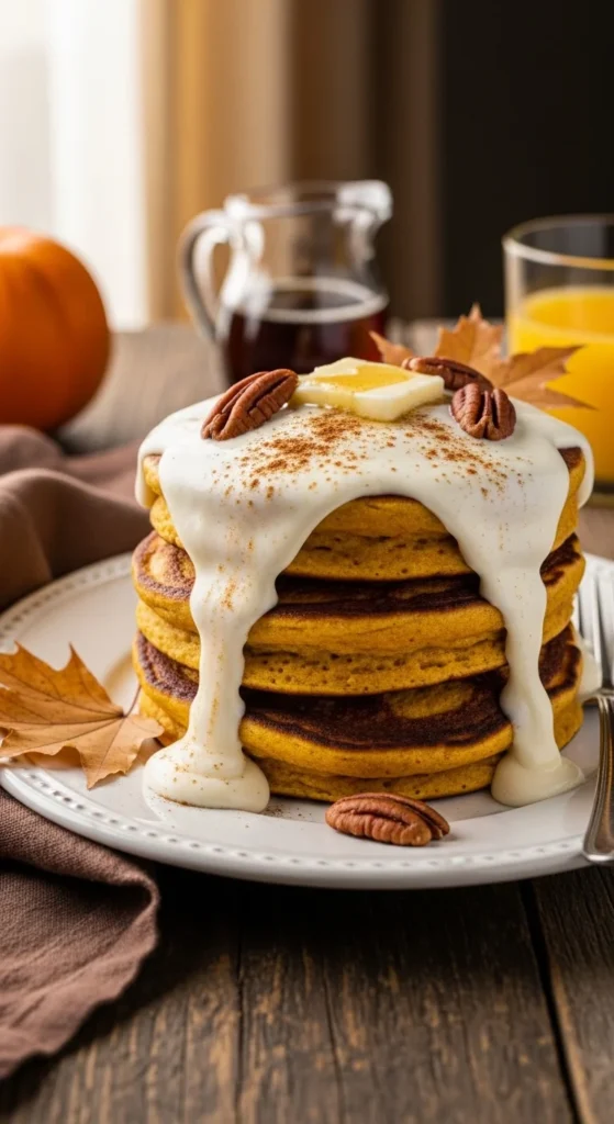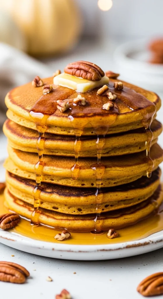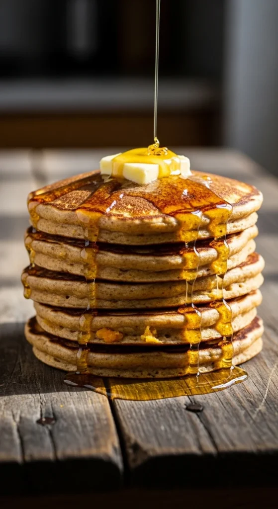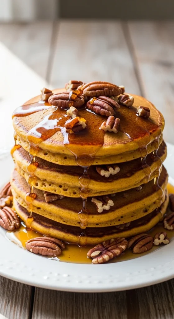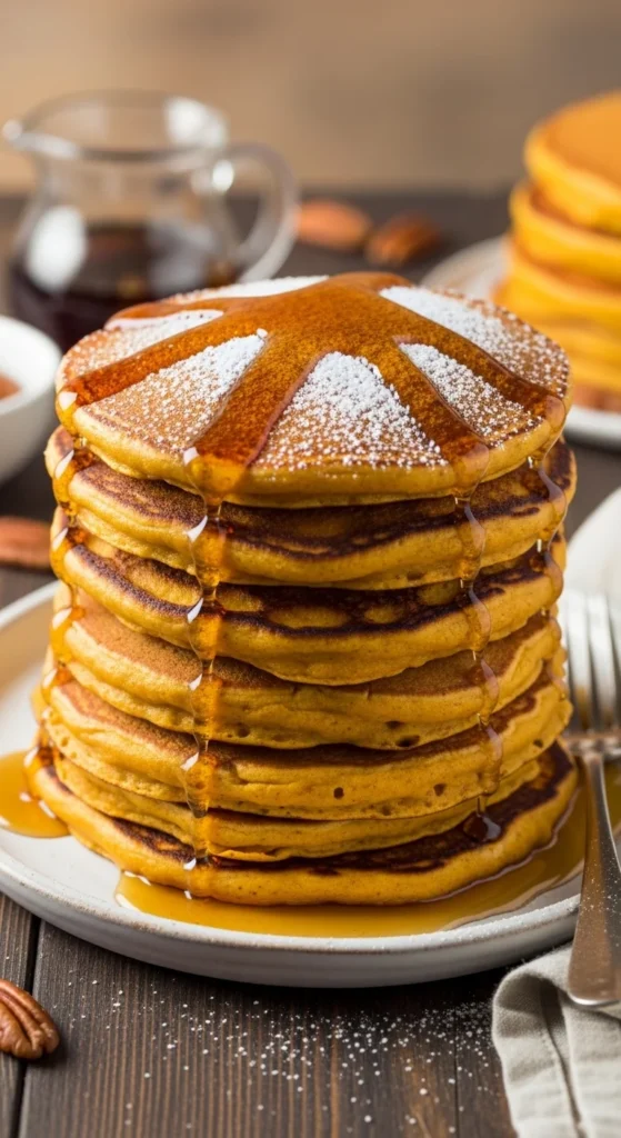 Pumpkin pancakes are one of the most comforting breakfasts for cool fall mornings. Pumpkin puree creates soft, fluffy pancakes while pumpkin pie spice adds warm cinnamon, nutmeg, and ginger flavor. When cooked slowly on a warm skillet, these pancakes develop golden edges and tender centers that stack beautifully on a plate.