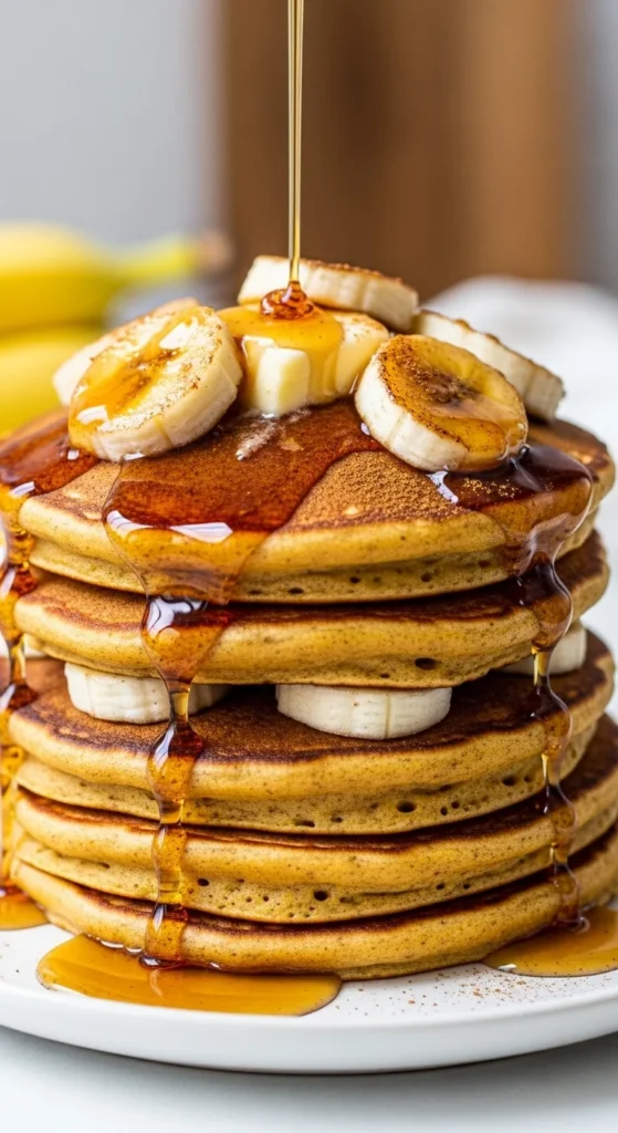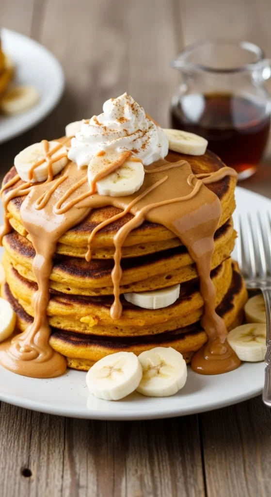 Pumpkin banana pancakes combine sweet banana flavor with warm pumpkin spice.