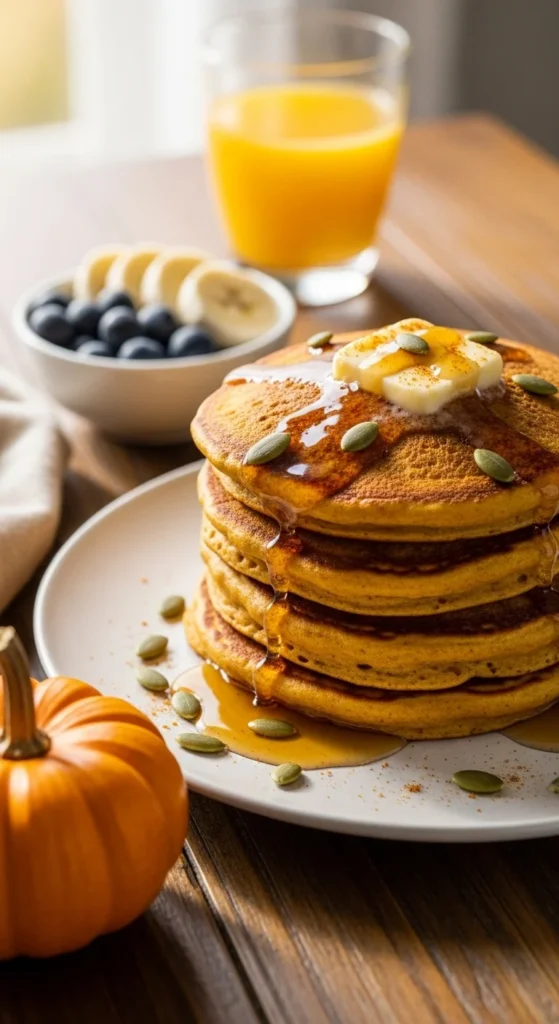 Pumpkin pancakes bring warm spices, soft texture, and comforting fall flavor to the breakfast table. Whether you enjoy classic fluffy stacks, chocolate chip versions, or hearty whole grain pancakes, pumpkin puree adds moisture and rich flavor to every recipe.
