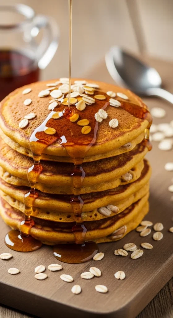 Oatmeal pumpkin pancakes add hearty texture and fiber while keeping the pancakes soft and fluffy.