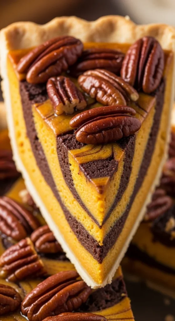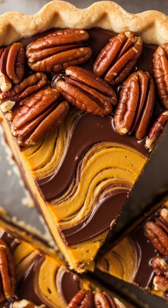3. Chocolate Swirl Pumpkin Pecan Pie