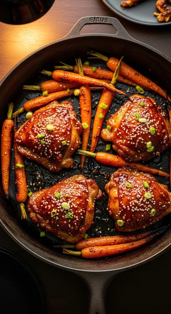 1. Hot Honey Chicken Thighs & Carrots