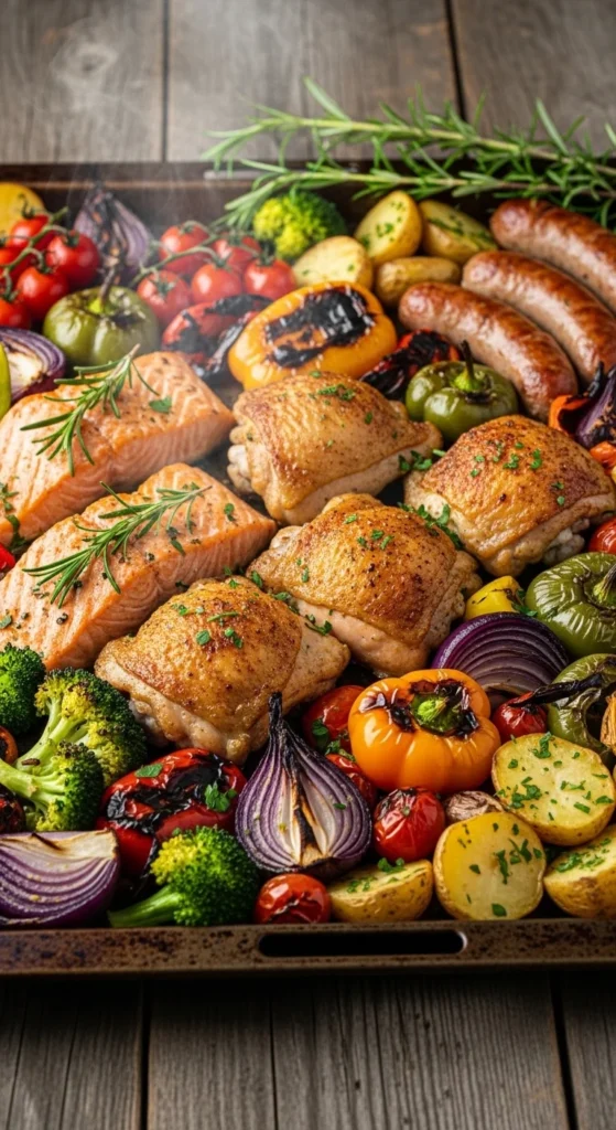 Sheet pan dinners keep weeknights simple. Toss everything onto one tray, roast, and dinner is ready with barely any cleanup. These recipes cover chicken, seafood, pork, steak, sausage, and plant-based options with bold seasonings and family-friendly flavors. Fast prep, big taste, and fewer dishes make these perfect for busy evenings.