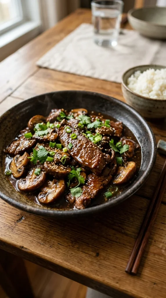 9. Slow Cooker Mongolian Beef with Mushrooms