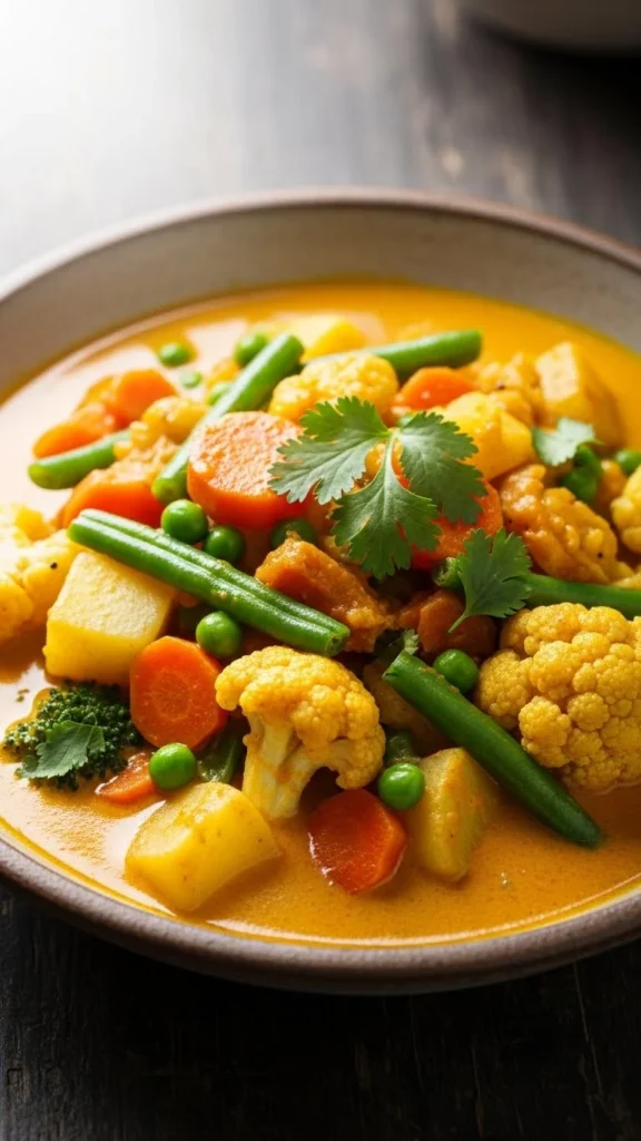 - Simmer vegetables and coconut milk 12–15 minutes.
