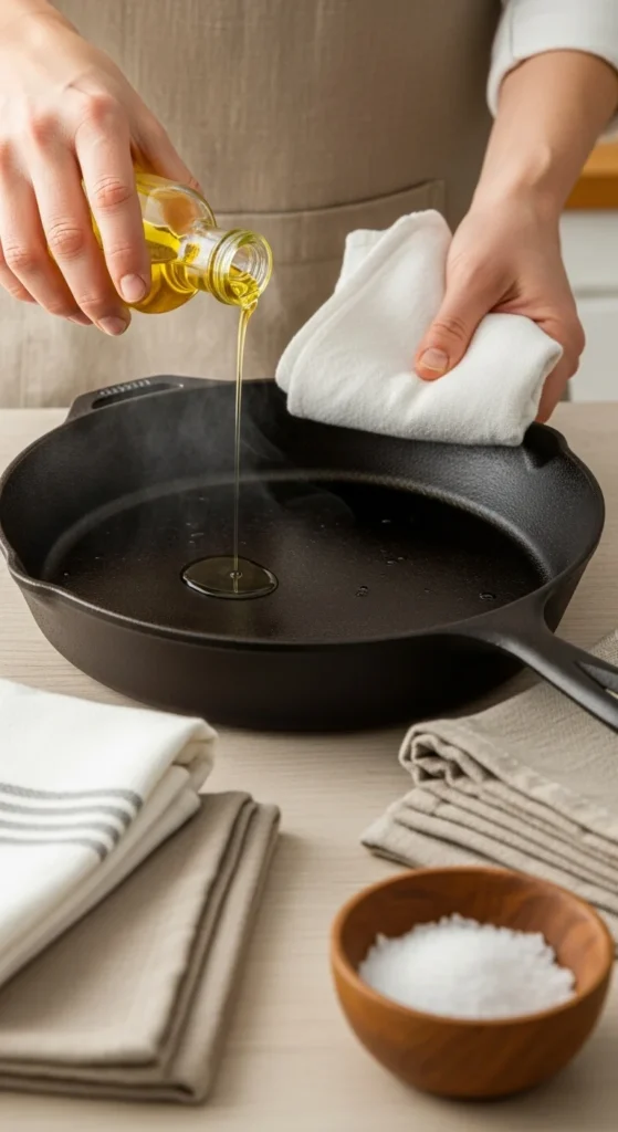 This process creates a protective coating that makes your skillet naturally nonstick and rust-resistant.