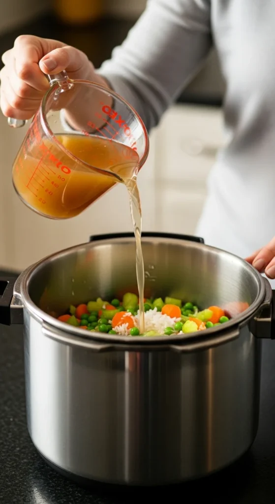 - Always add at least one cup of liquid (water, broth, or sauce).