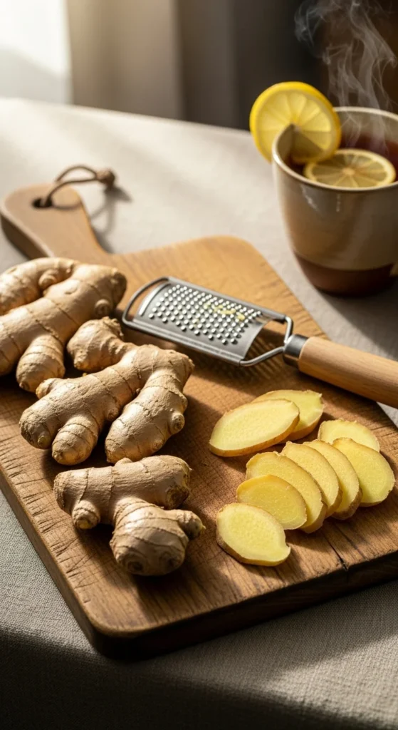 • Hot Ginger Tea: Boil sliced ginger with honey and lemon.
