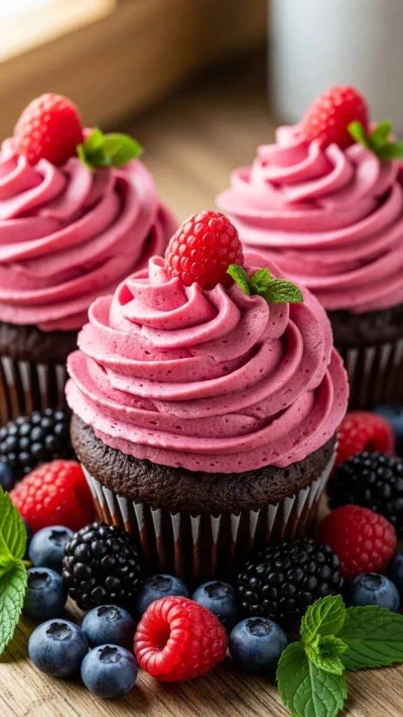 Chocolate base paired with fruity frosting feels perfect for Valentine’s Day.