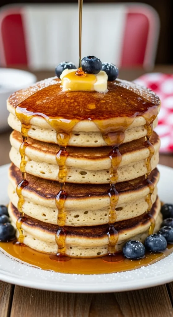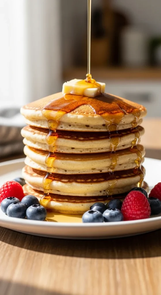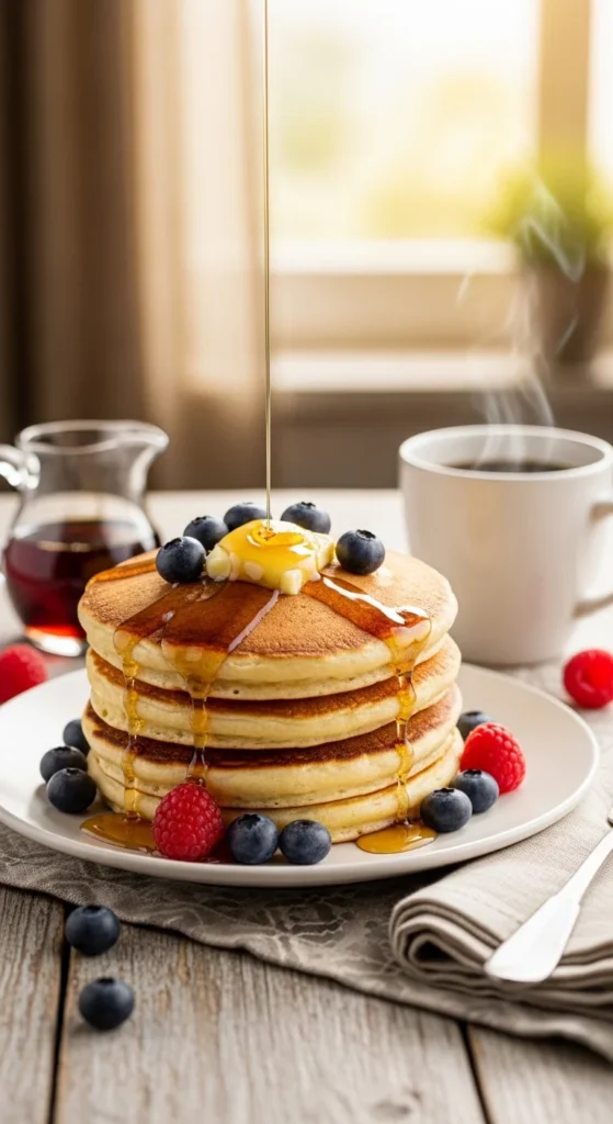 Soft, tall pancakes made with simple pantry ingredients.