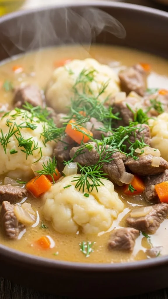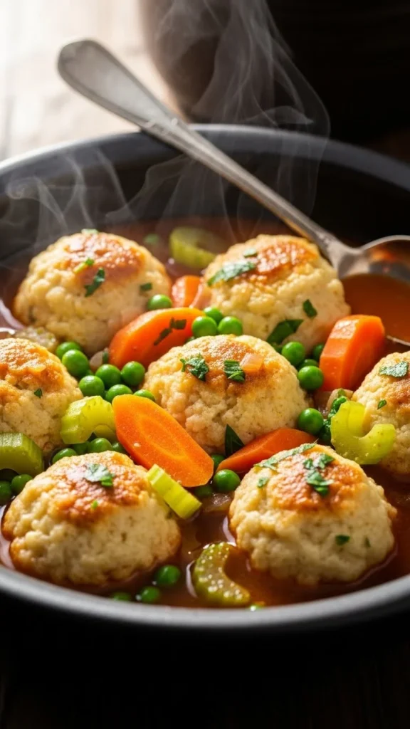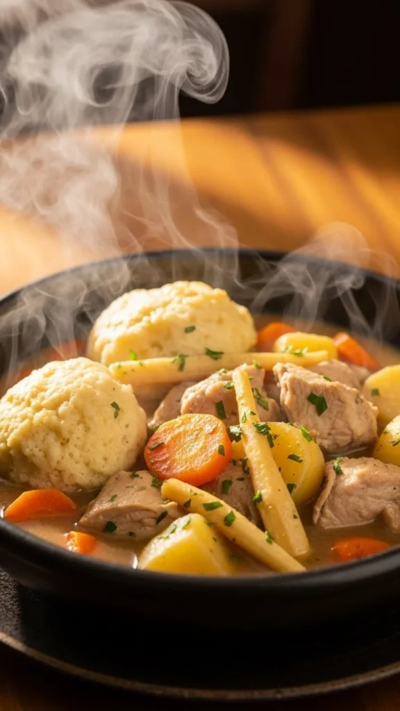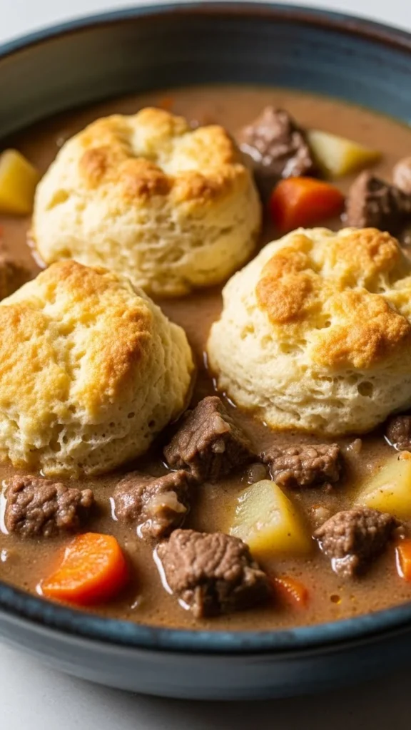 The biscuit-style dumplings create a satisfying texture.