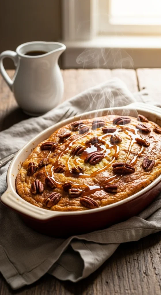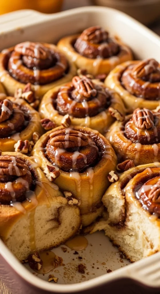 Store-bought cinnamon rolls make this maple-pecan casserole fast, cozy, and crowd-pleasing.