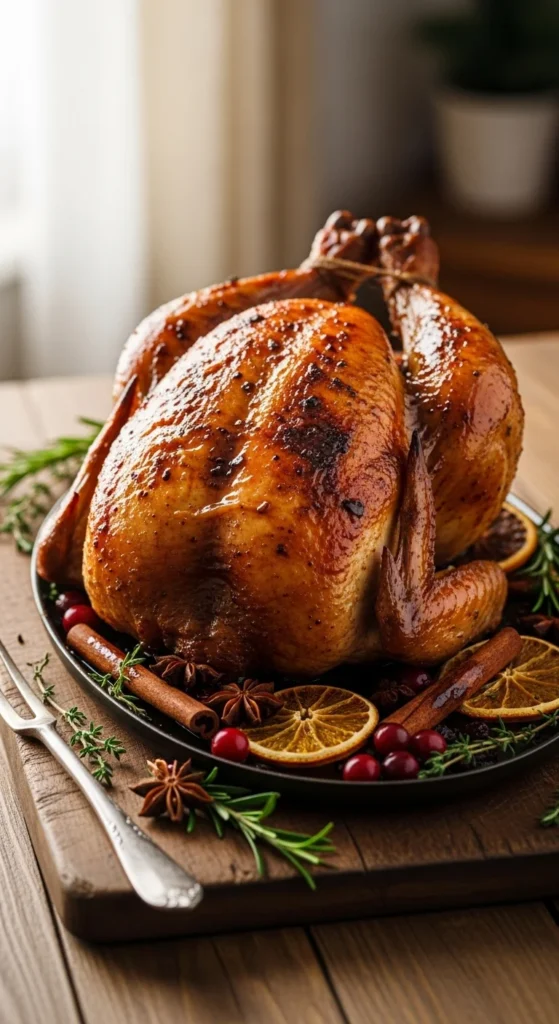 - Roast for 1–1.5 hours, basting halfway.