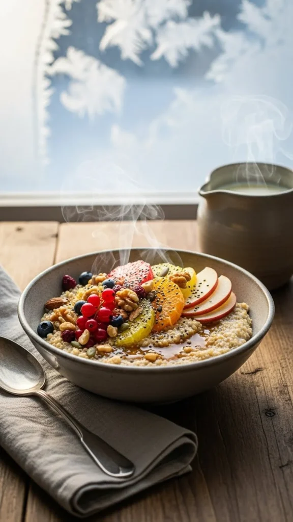 Warm quinoa porridge brings together comfort, texture, and steady energy in one simple bowl. Try a few of these winter variations, save the ones you love for busy mornings, and keep playing with toppings so breakfast stays cozy, colourful, and something you look forward to every day.