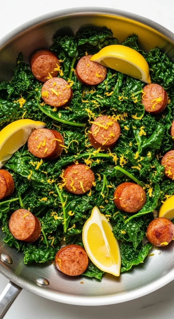 13. Lemon-Garlic Sausage & Kale Skillet