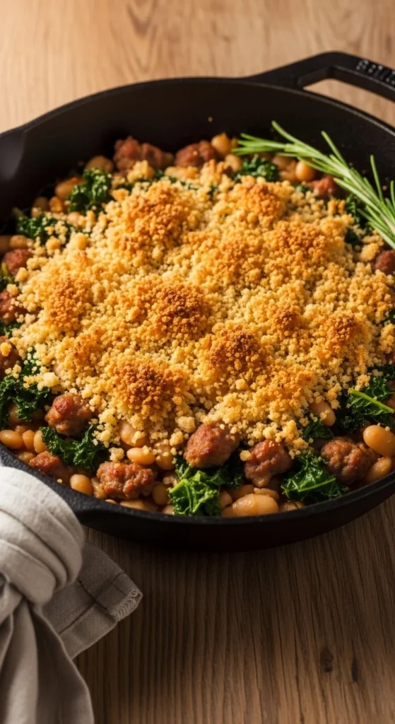16. Sausage, Kale & White Bean Skillet with Crispy Top