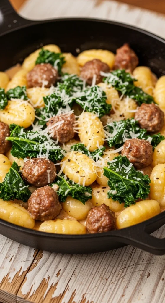 3. Creamy Sausage, Kale & Gnocchi Skillet