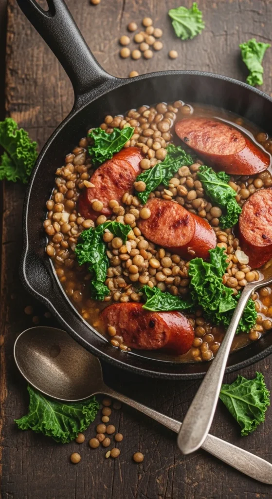 7. Smoked Sausage, Kale & Lentil Skillet