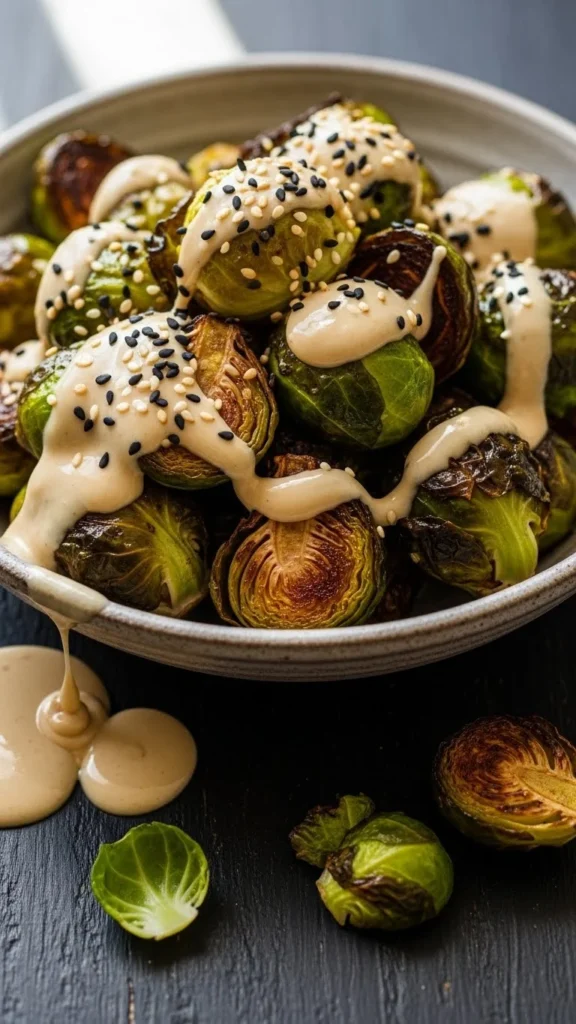 20. Crispy Brussels Sprouts With Tahini-Lemon Drizzle