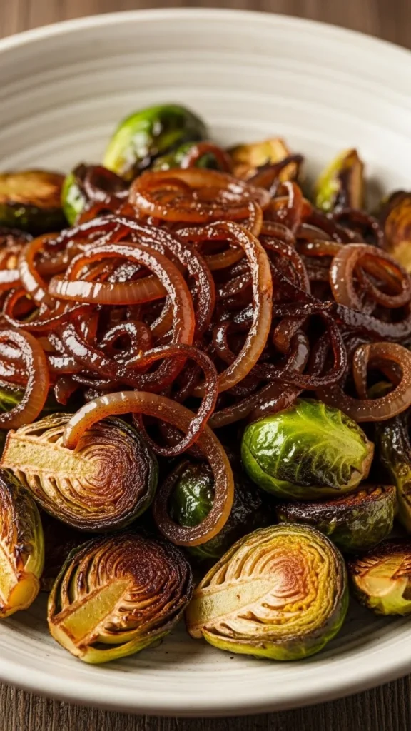 21. Crispy Brussels Sprouts With Caramelized Onions