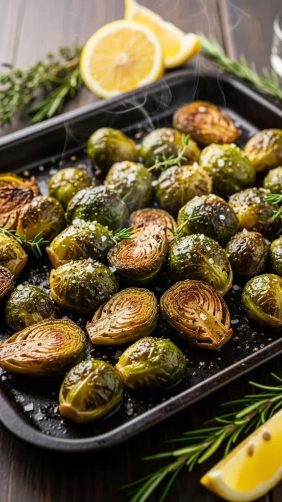 - Toss sprouts with olive oil, salt, and pepper; roast 20–25 minutes until crisp.
