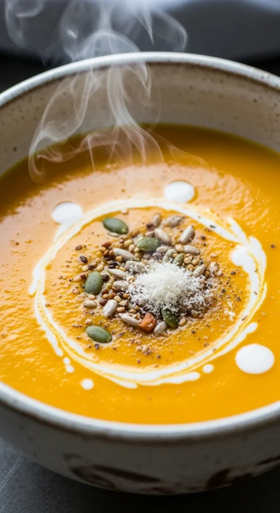 This soup is silky, warming, and lightly sweet with gentle spice.
